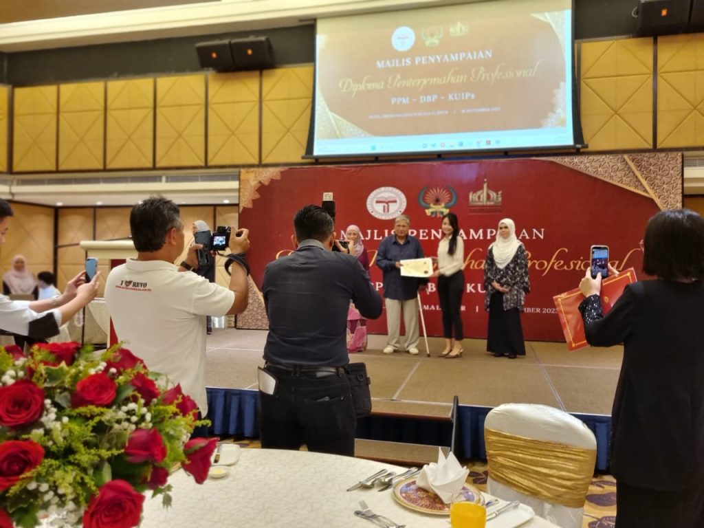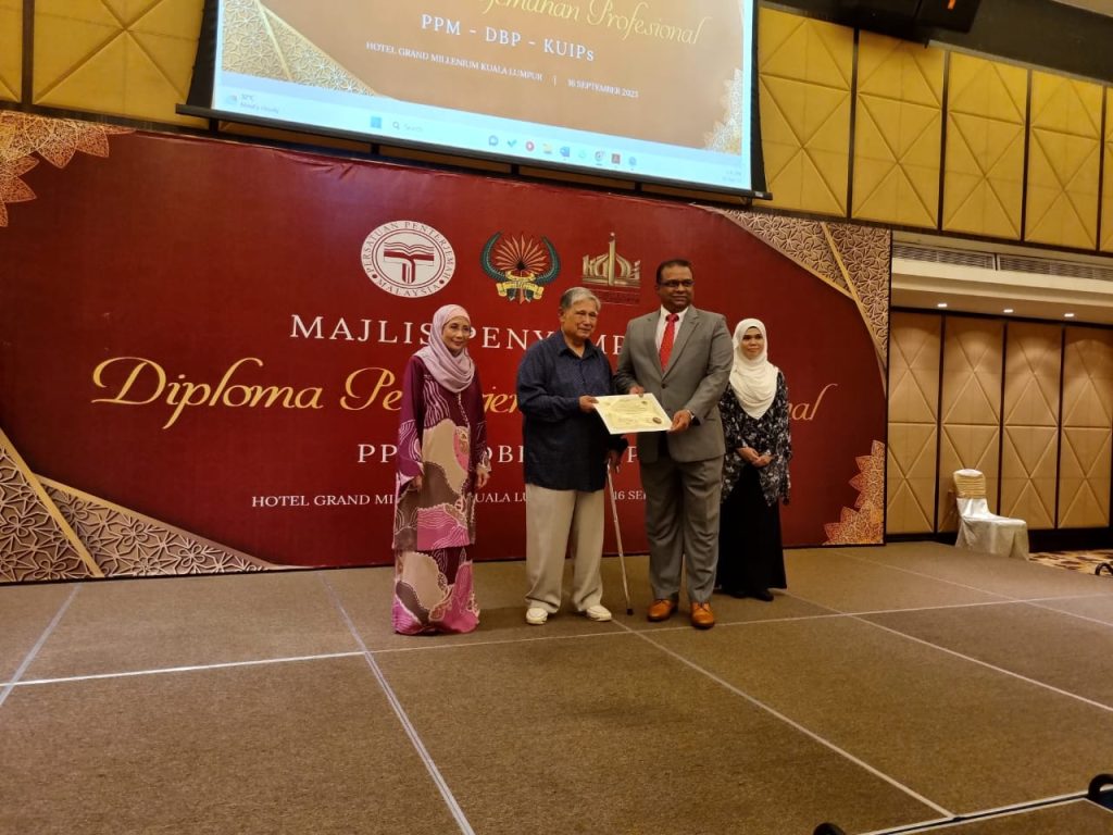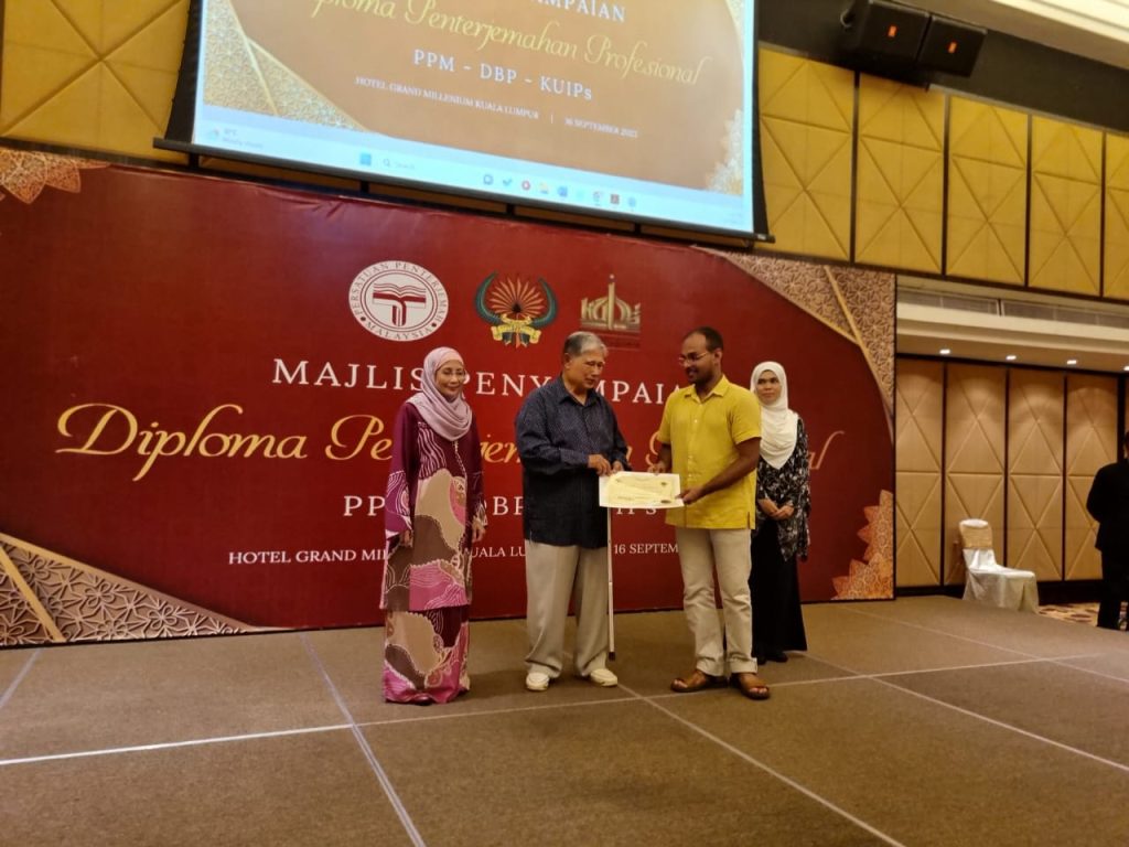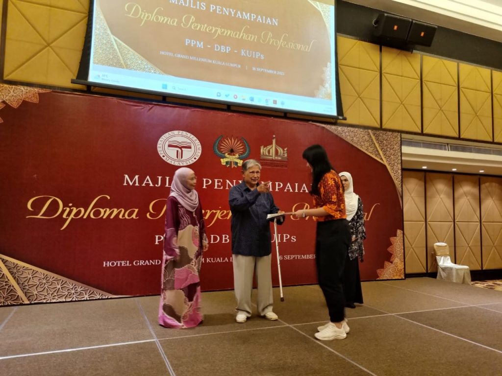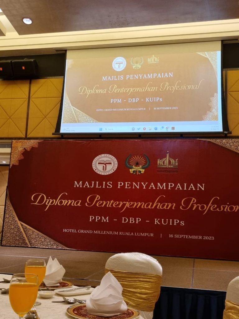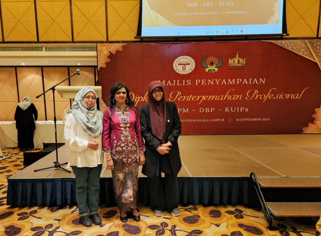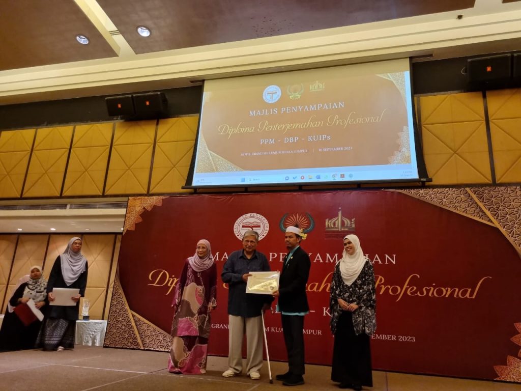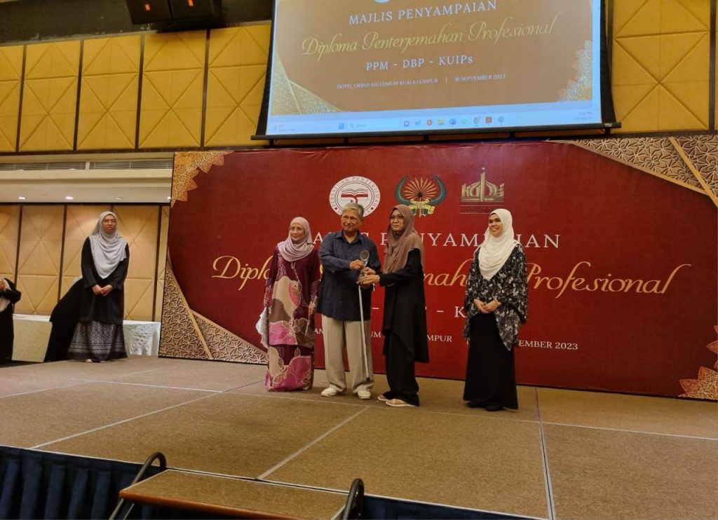 Majlis Penyampaian Diploma Penterjemahan Profesional PPM-DBP-KUIPs bagi Sesi KM 2/2022 dan Sesi Khas KUIPs 5/2022 telah berlangsung pada 16 September 2023 di Hotel Grand Millennium Kuala Lumpur. Seramai 33 orang penerima diploma di samping pengiring, wakil KUIPs, wakil DBP, Ahli Majlis dan tenaga pengajar telah hadir. Yang Berbahagia Prof. Emeritus Abdullah Hassan, Presiden PPM telah menyampaikan diploma diiringi oleh Dr.Hasuria Che Omar, Naib Presiden PPM dan Pn. Anis Jazilah Azmin, Pengarah Pusat Bahasa KUIPs.
